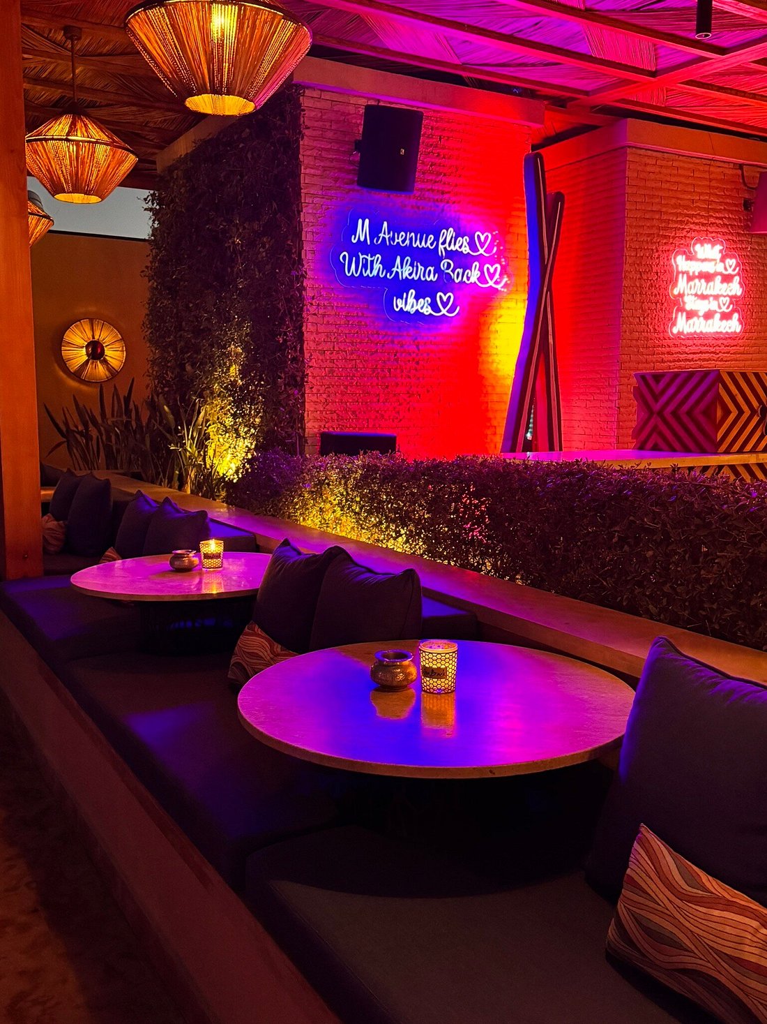 Akira Back est un restaurant japonais haut de gamme sur le toit à Marrakech, au sommet de l’Hôtel Pestana CR7. Il propose une cuisine japonaise moderne avec des influences coréennes et mondiales, le tout préparé par un chef célèbre. Le cadre est élégant avec une superbe vue sur la ville la nuit.