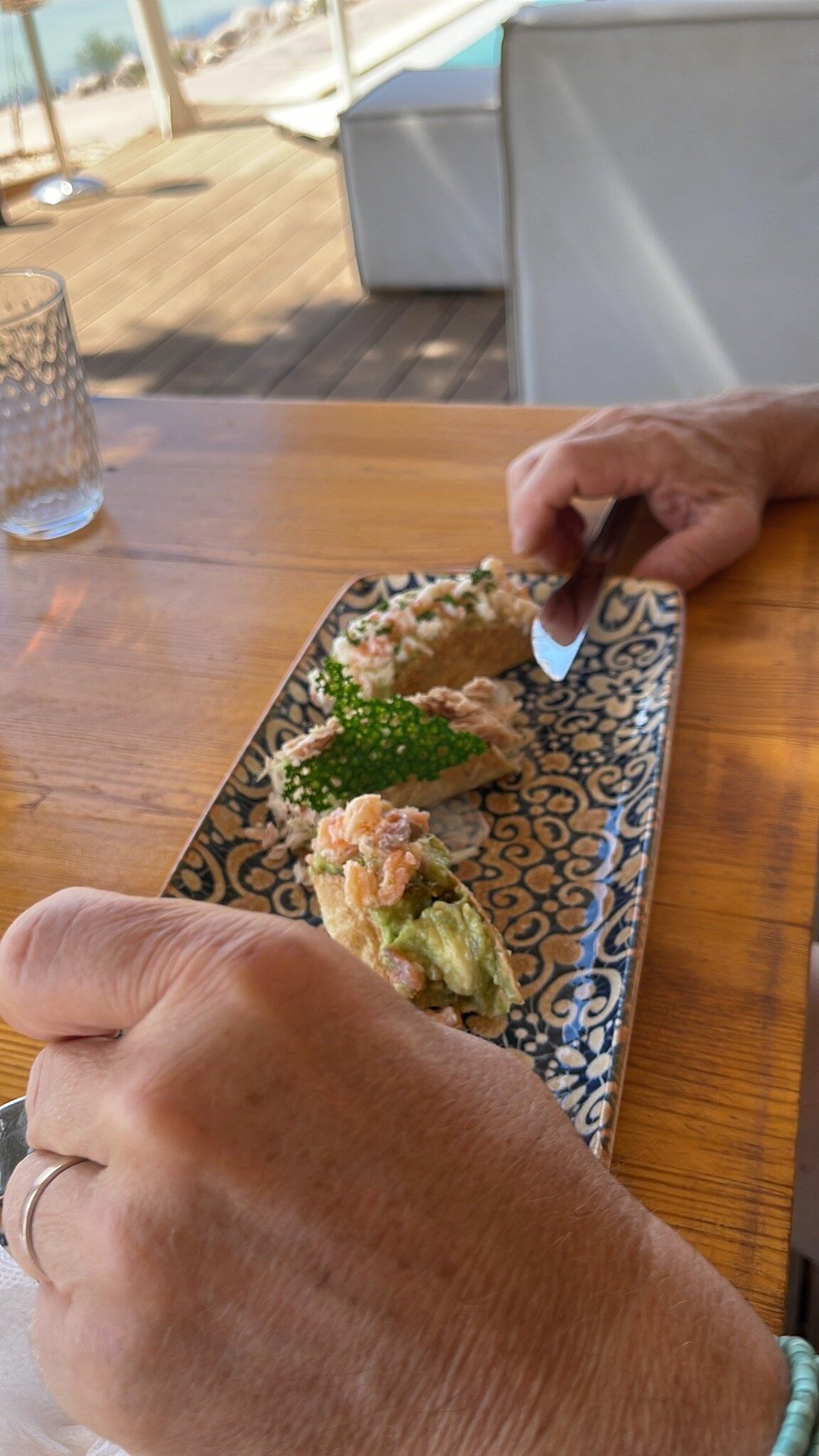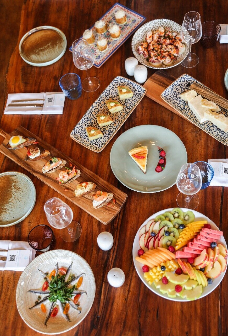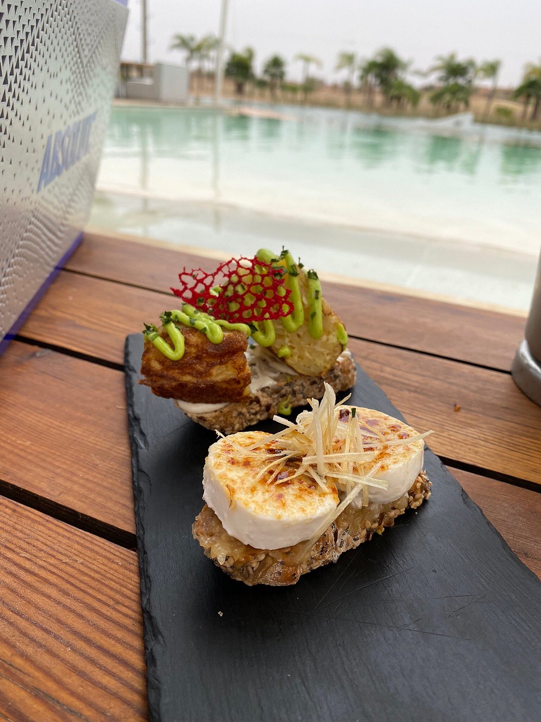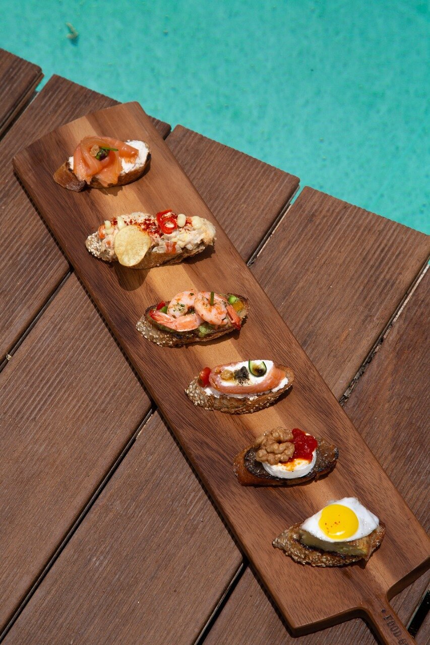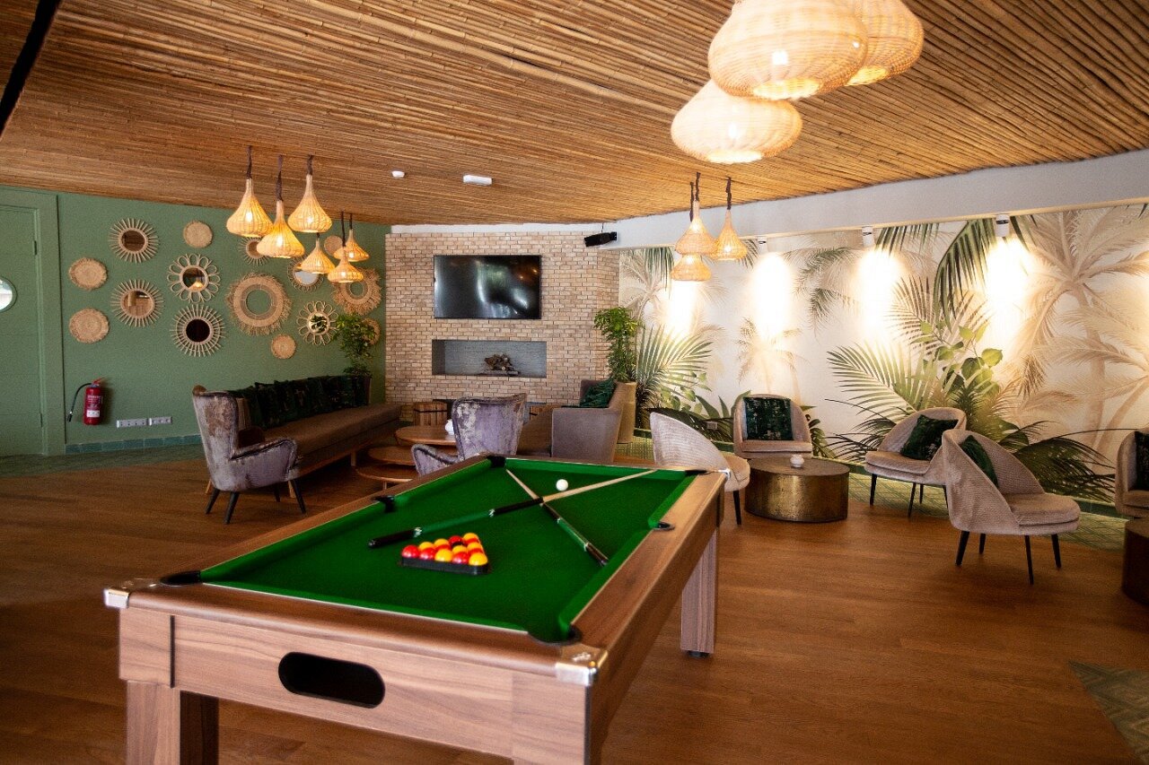 - Beach club + ristorante con lettini in piscina e viste soleggiate.
