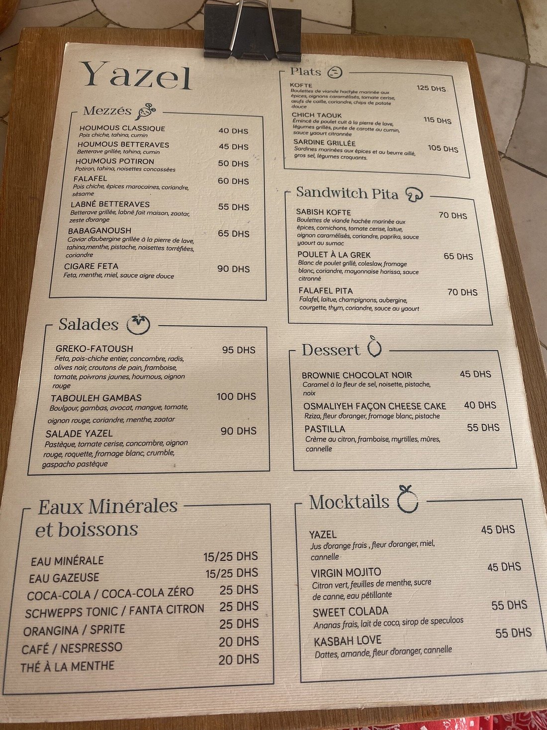 - Main courses: 120–190 MAD.
